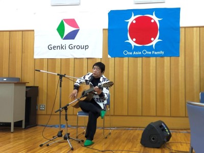 医療・介護福祉・教育分野を中心に事業運営をしている「元気グループ」。タイ、ミャンマー、カンボジア、ベトナムなどアジアの若い研修生たちの忘年会でルナ憲一の歌とギターを楽しんで頂きました。離れた会場からはリモートで参加。若い皆さんのこれからを応援していま~す。
